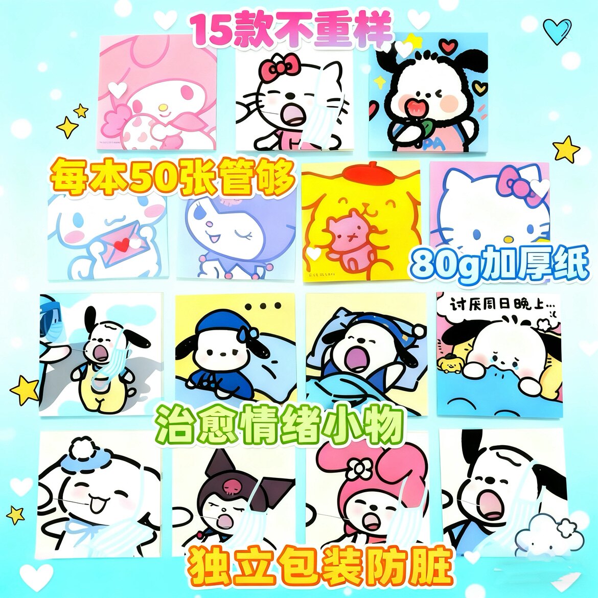 卡皮巴拉便利贴小学生专用便签本初中生高颜值可爱女孩留言记事贴办公室N次贴高粘性错题贴纸可撕粘贴便条纸