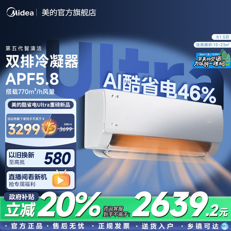 【新品】美的空调大1.5匹新一级变频冷暖家用挂机官方酷省电ultra