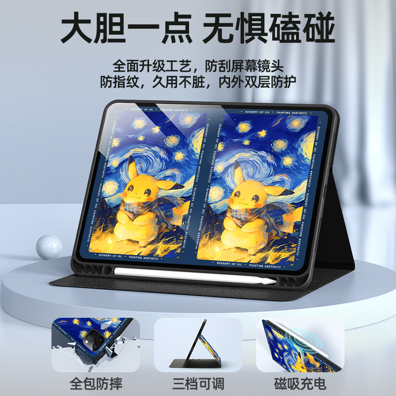 适用皮卡丘苹果平板ipad保护壳2024新款ipadpro保护套9代10梵高星空ipadair5带笔槽air4好看mini6硅胶5迷你43