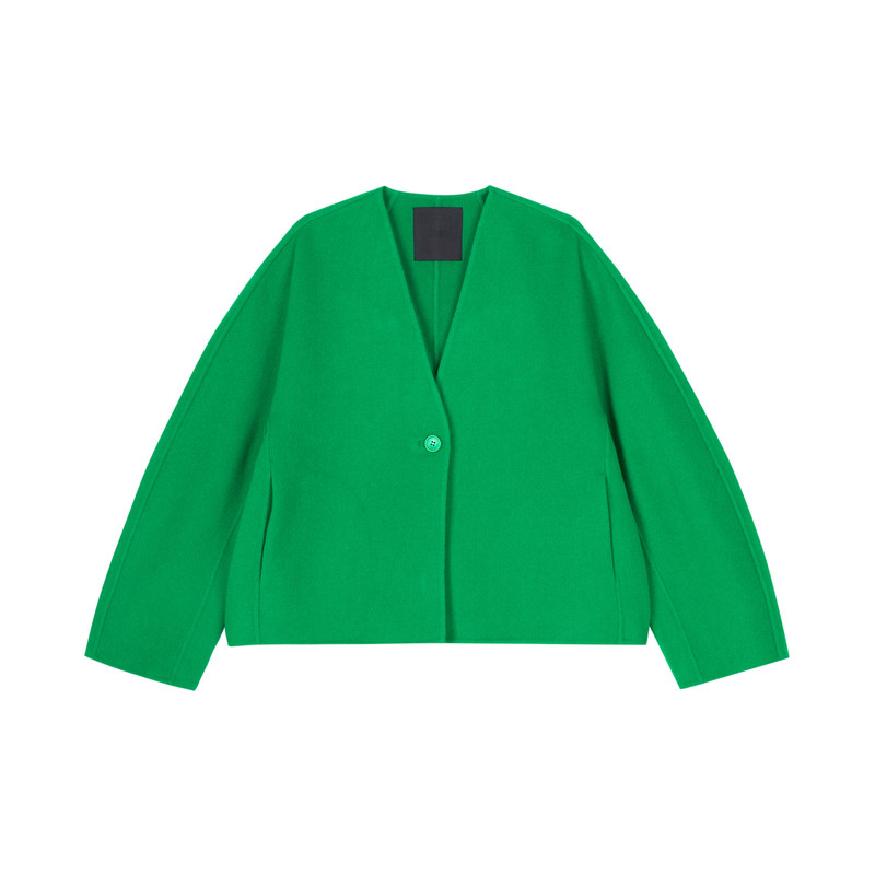 气质双面羊毛大衣女短款2025新款单排扣双面呢圆领小香风毛呢外套