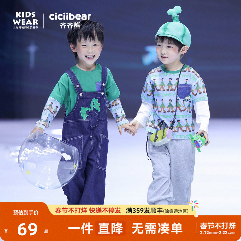齐齐熊宝宝秘鲁棉软糯亲肤假两件春款T恤