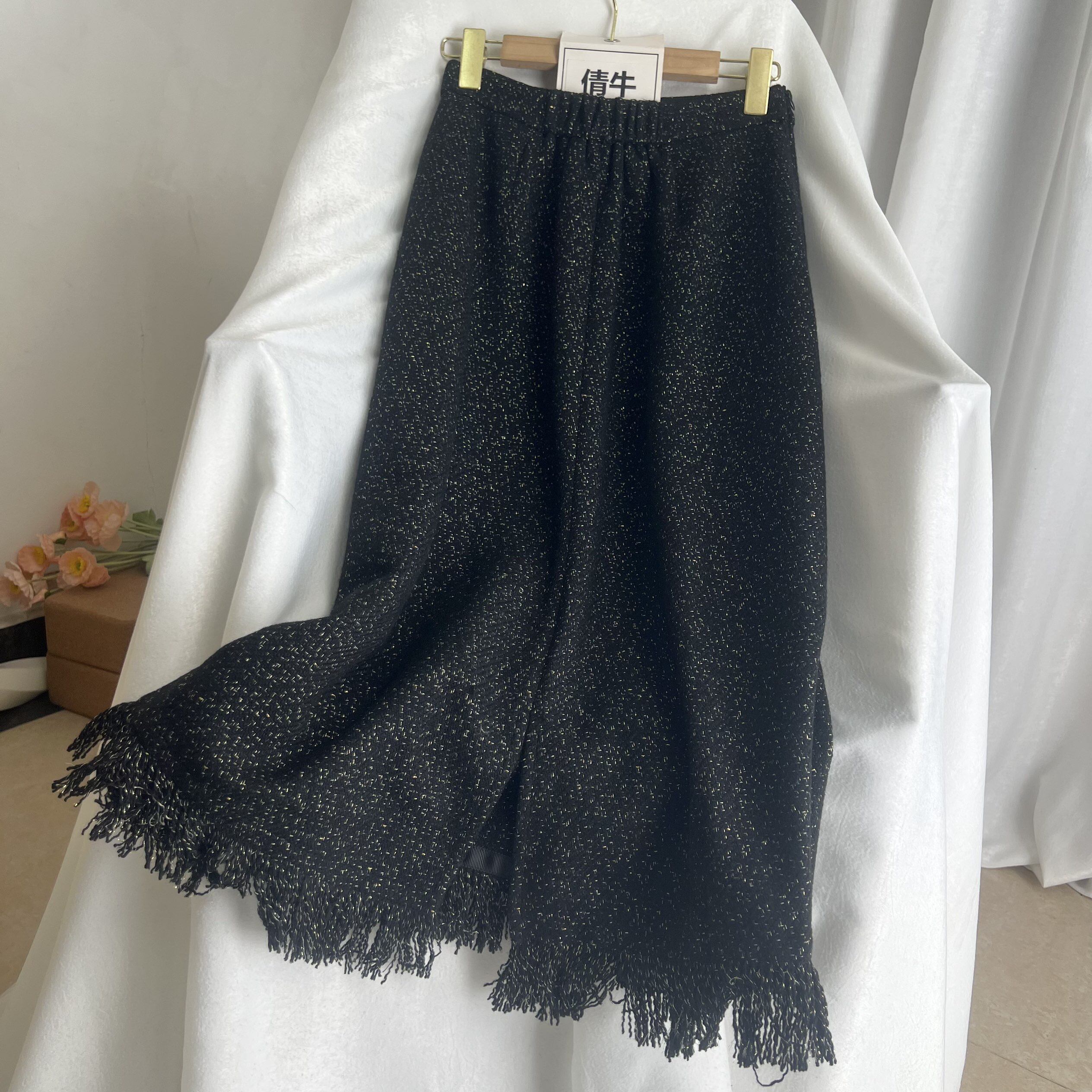 倩牛神货】2026春装新款小香气质流苏金丝羊毛松紧腰半身裙女