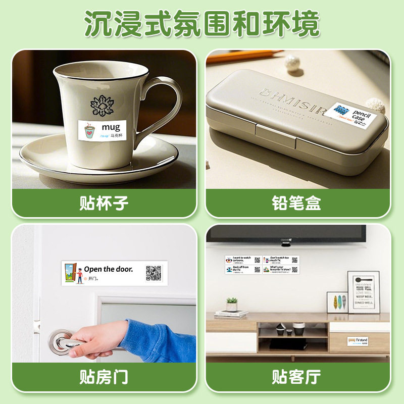 儿童常用家庭情景英语口语便利贴纸日常生活便签贴纸女孩学习用品标签英语贴小学生英语单词启蒙卡通贴纸防水