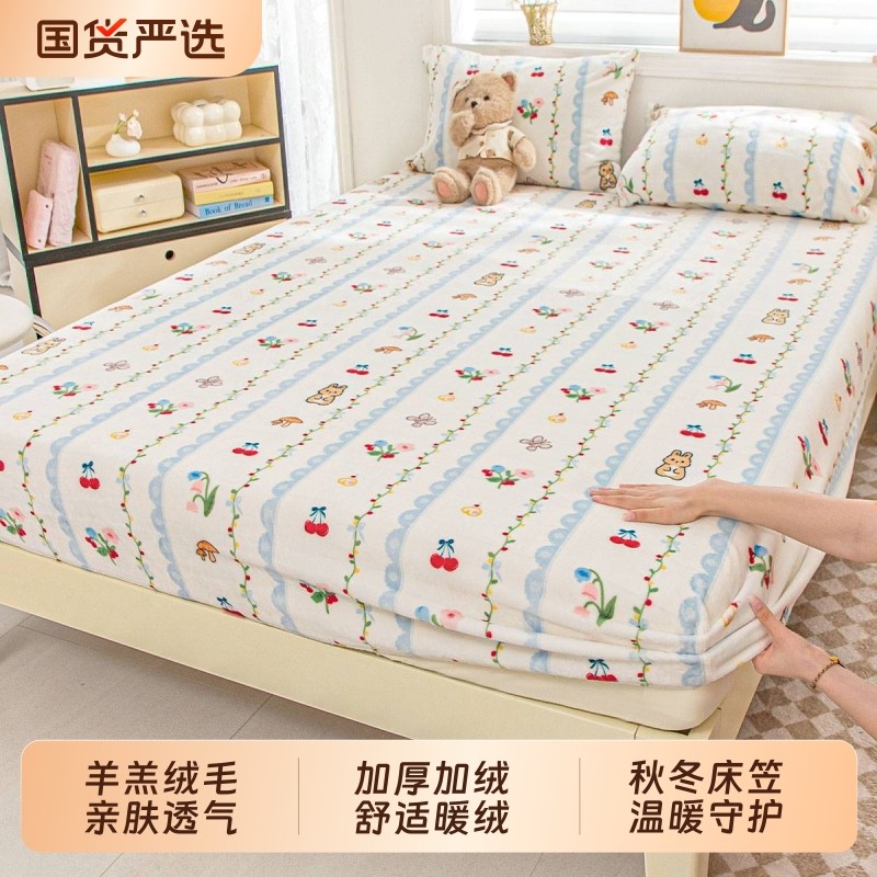床罩水晶绒加厚亲肤防滑奶油风榻榻米床笠床品套件牛奶绒三件套新