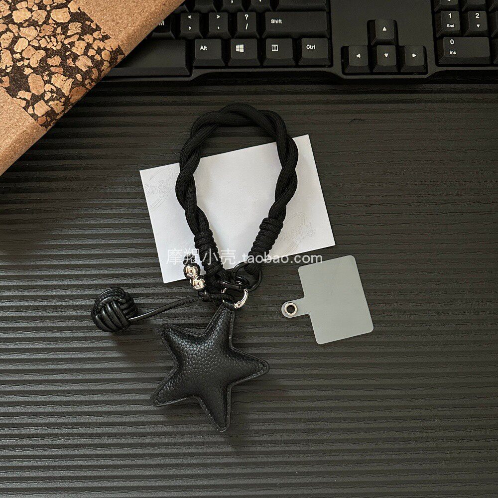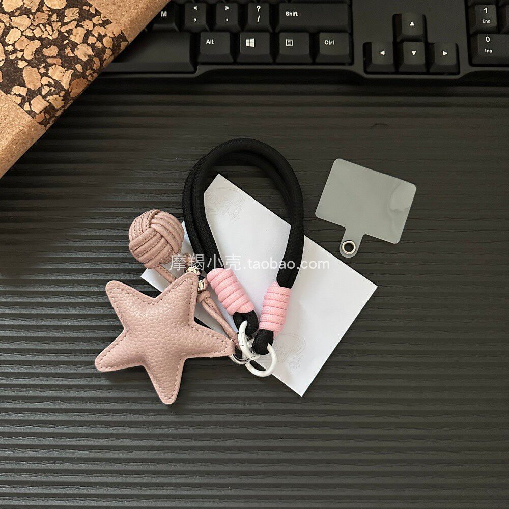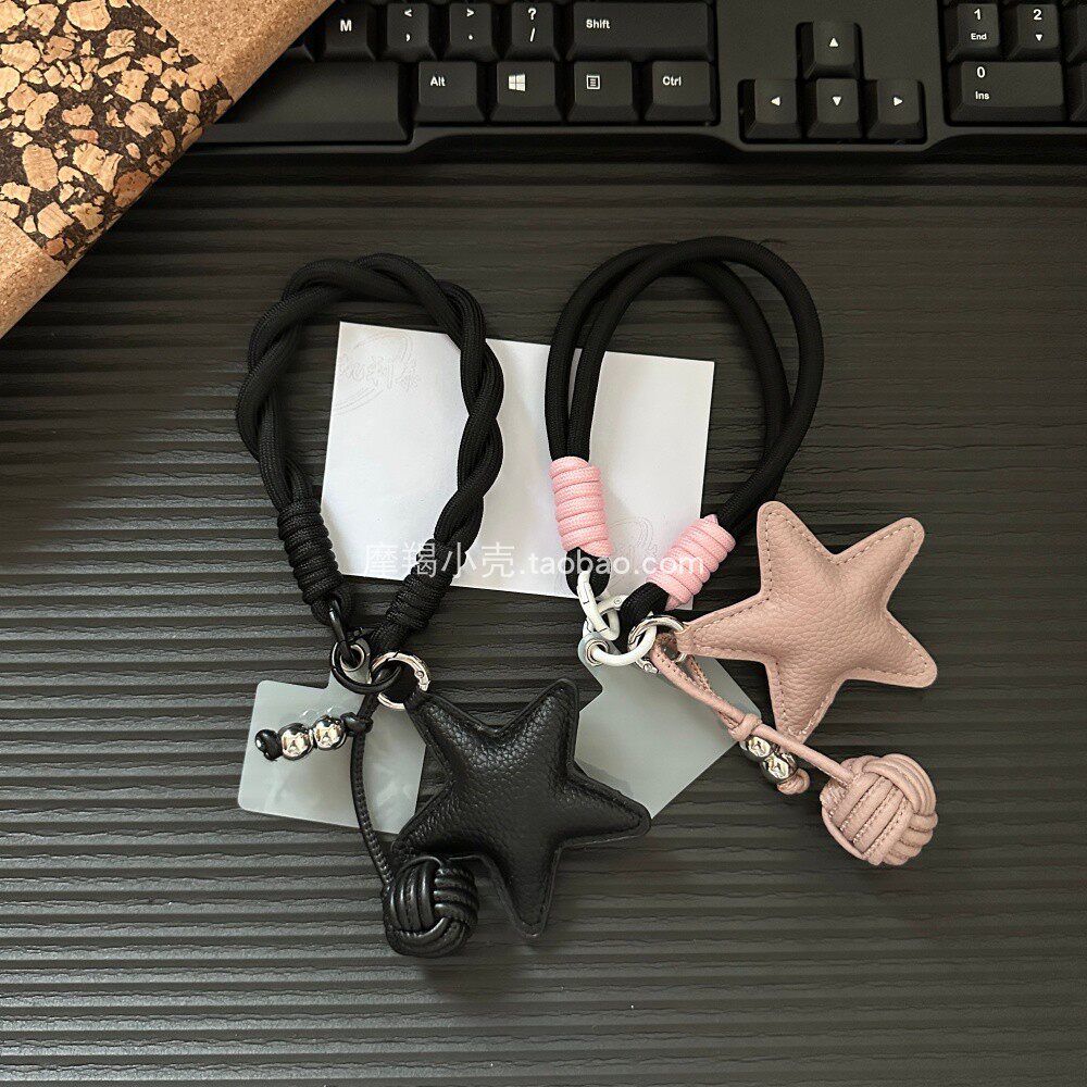 高级ins简约粉黑手绳皮质星星圆球挂件小众手机挂链包挂时尚饰品