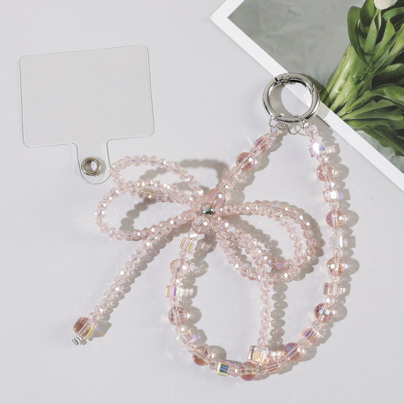 创意水晶蝴蝶结串珠手机链钥匙扣小挂件女时尚手腕挂饰串珠手链