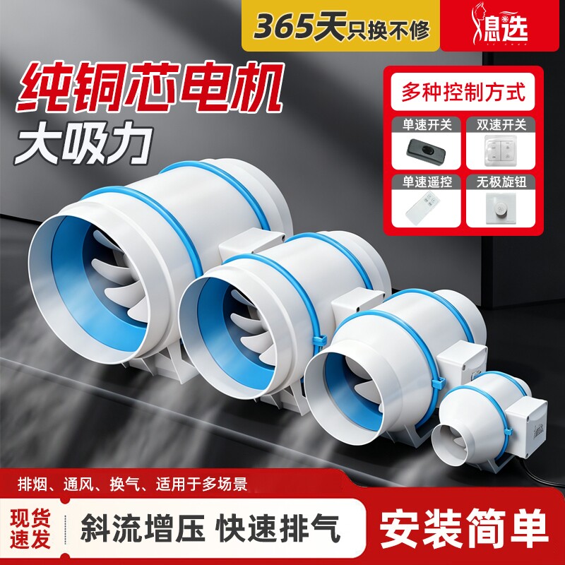 管道风机斜流换气新风机卫生间换气扇厨房排风扇排气室内大吸力