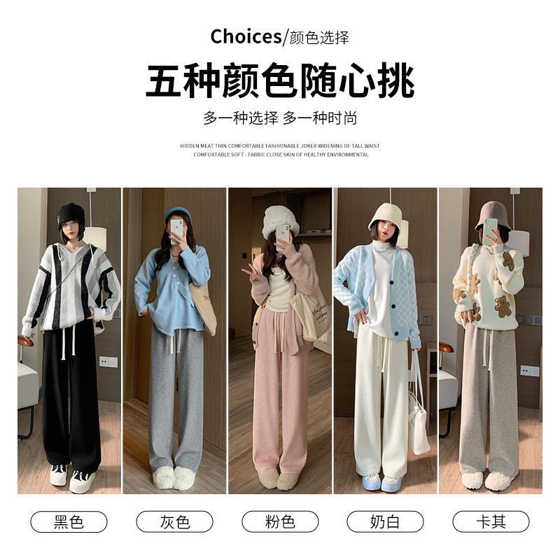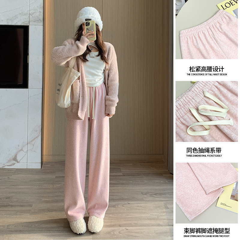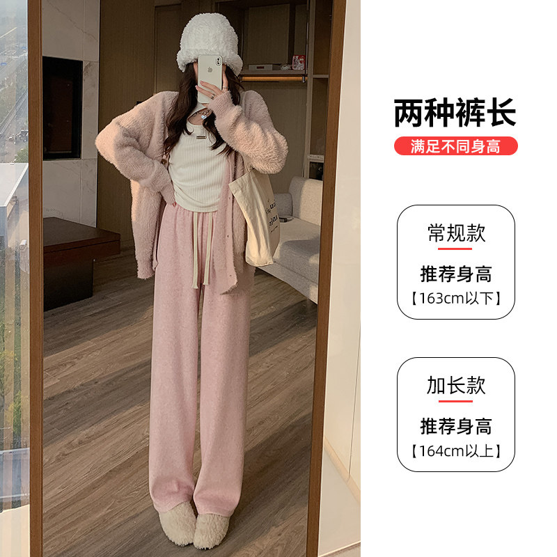 粉色阔腿裤女秋冬2025新款加厚小个子大码窄版直筒毛巾裤白色加长