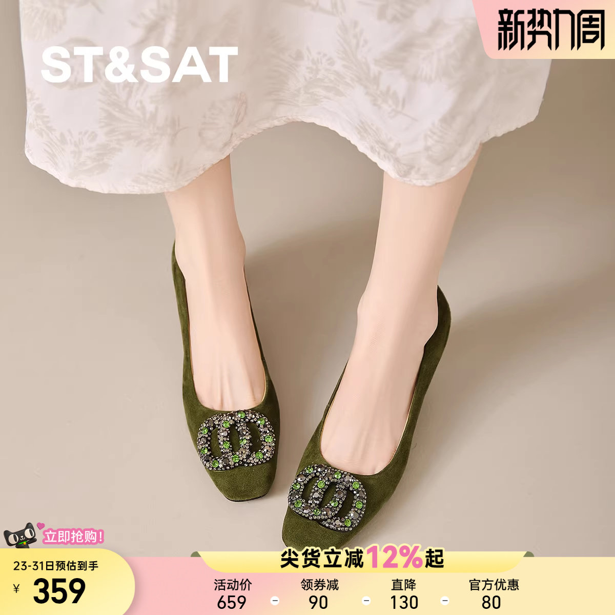 星期六2025新款法式方头粗跟浅口单鞋女夏季配裙子不累脚高跟鞋