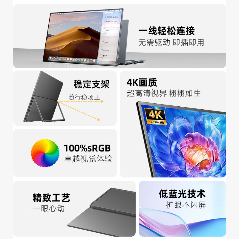 EIMIO4k超清便携式显示器23.8寸笔记本电脑扩展便携屏PS5外接副屏