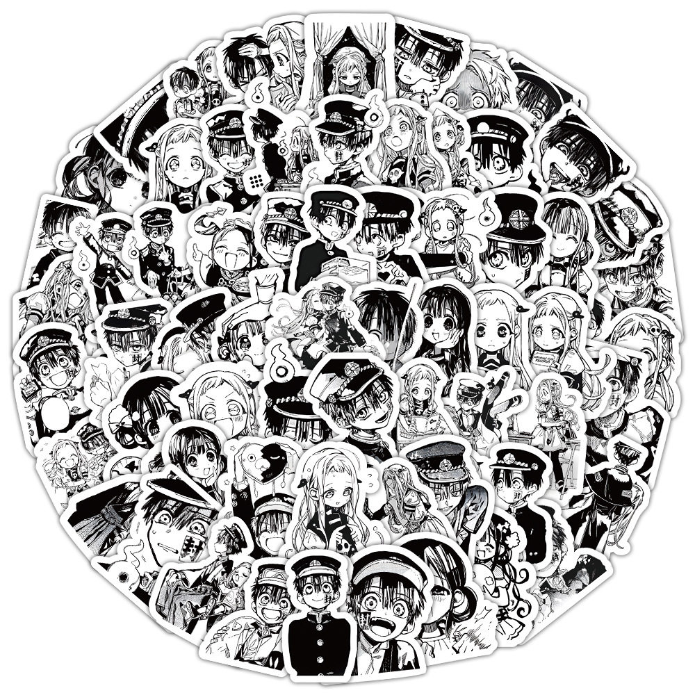 100张黑白花子君贴纸 动漫人物周边行李箱水杯桌面装饰防水小贴画