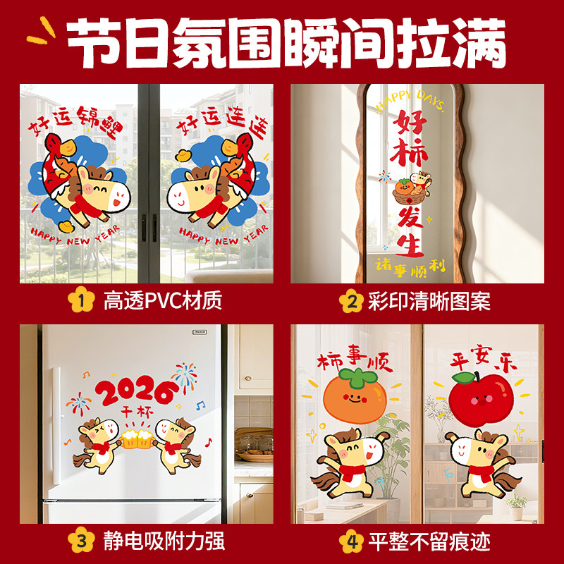 2026马年静电门贴新年厨房装饰窗贴家用贴画窗花春节过年玻璃贴纸