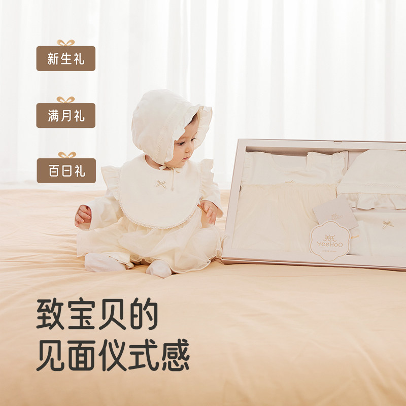 【李佳琦年货节全品类返场】英氏婴儿4件套礼盒新生儿周岁百日衣