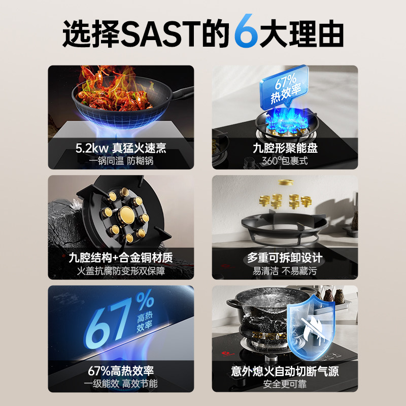 【政府补贴】SAST双灶燃气灶家用嵌入式天然气灶台式液化气猛火灶