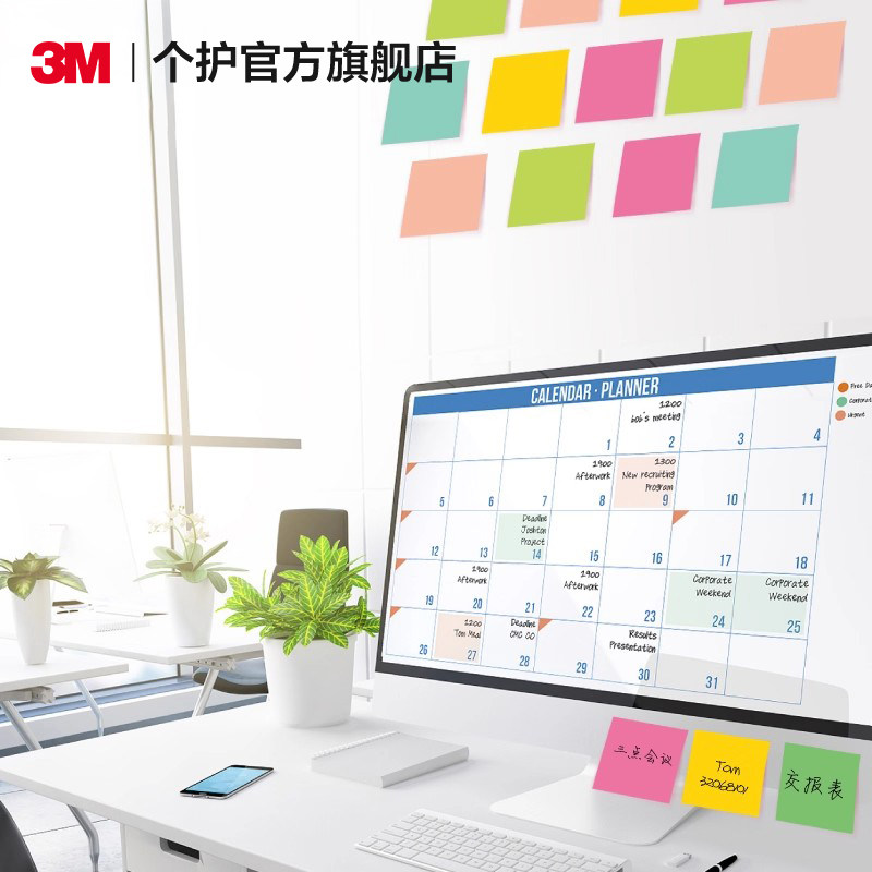 3M便利贴报事贴狠贴炫彩系列654MS多色可再贴便条纸便签纸本CBG