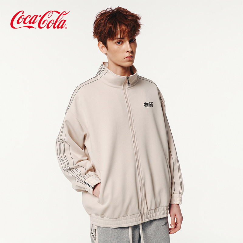Coca-Cola/可口可乐休闲外套男美式潮牌立领夹克开衫卫衣加绒加厚