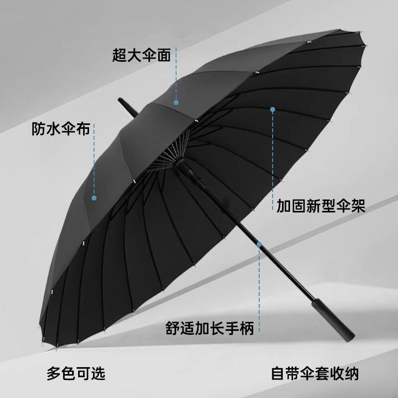雨伞长柄大号24骨雨伞全自动暴雨专用加固抗大伞直柄白色弯柄手动