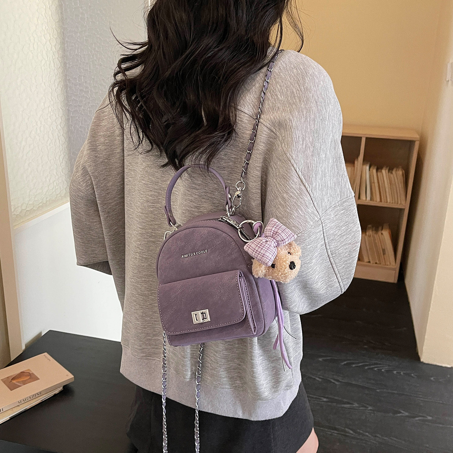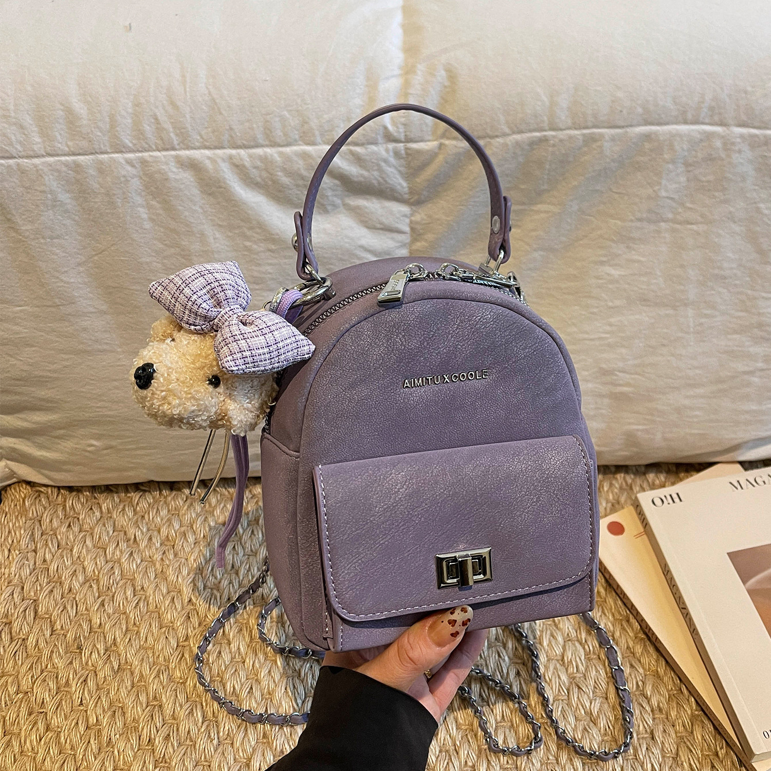 艾米兔女包2026新款日常休闲通勤百搭手提纯色时尚质感洋气双肩包
