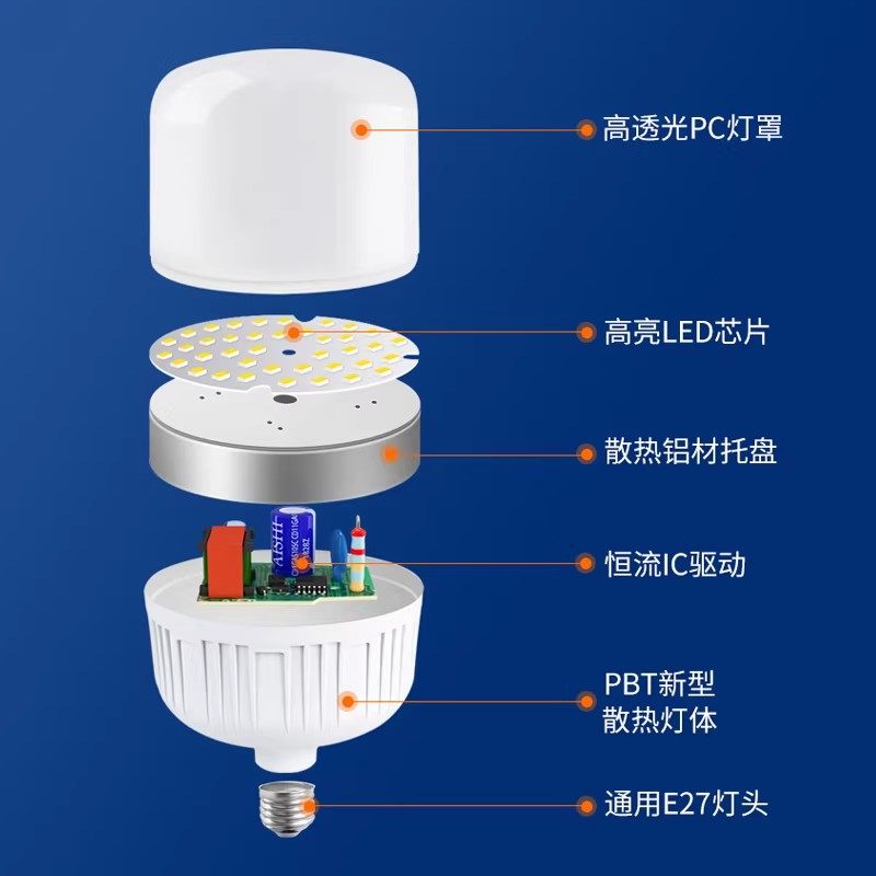 led灯泡超亮节能灯白光家用省电E27大螺口客厅室内灯照明圆柱形灯