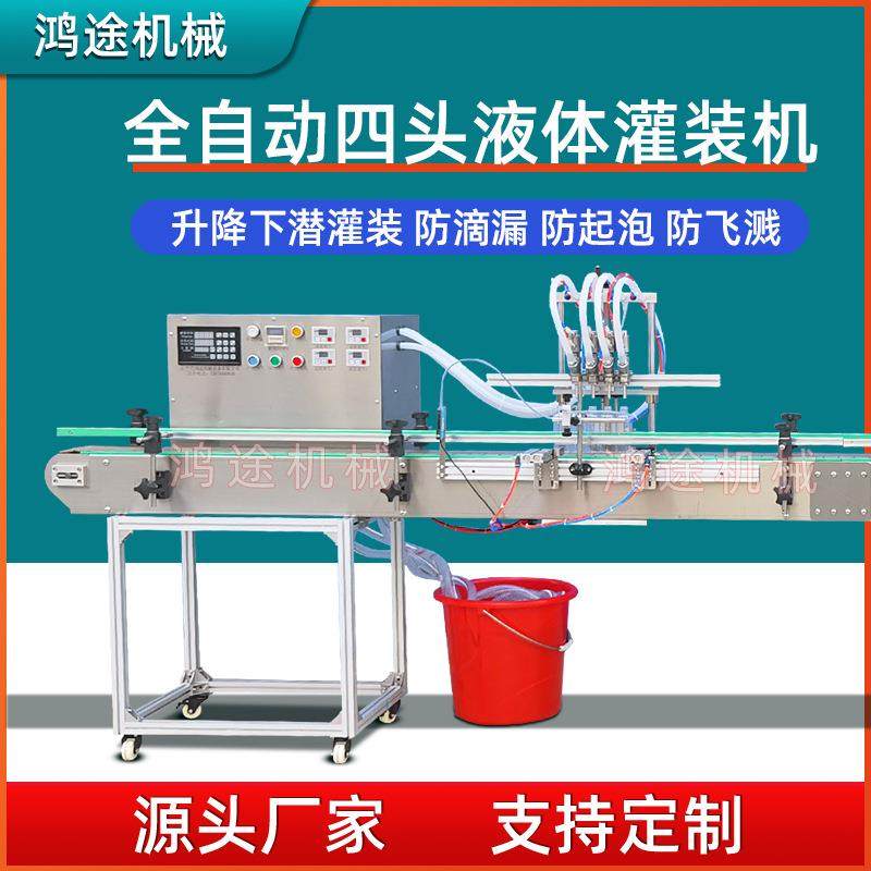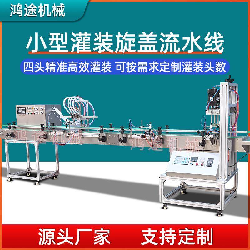 小型全自动4头液体灌装机旋盖流水线洗手消毒液香水清洗剂油污净