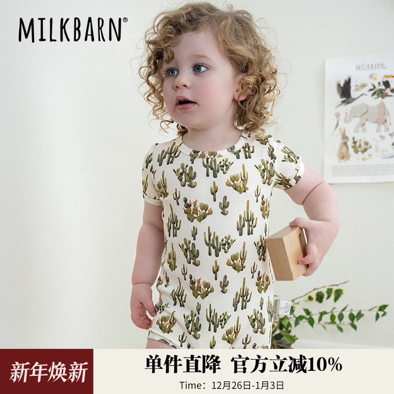 Milkbarn2025春夏新品婴儿短袖包屁衣宝宝衣服哈衣爬服莫代尔童装