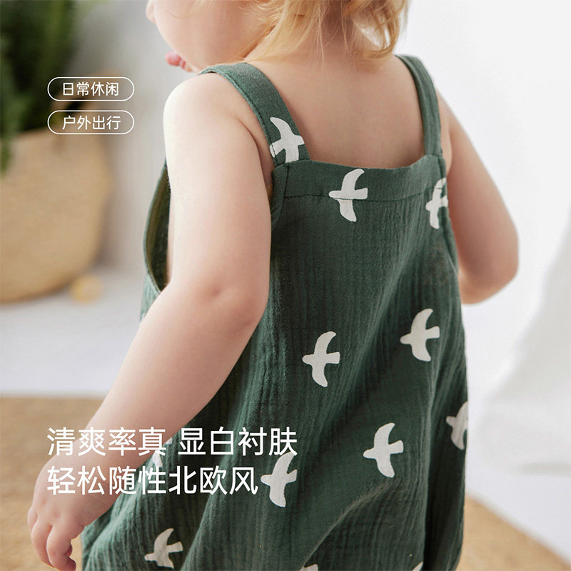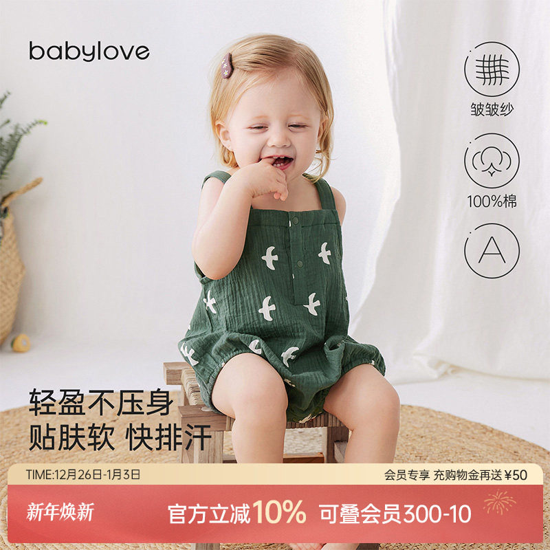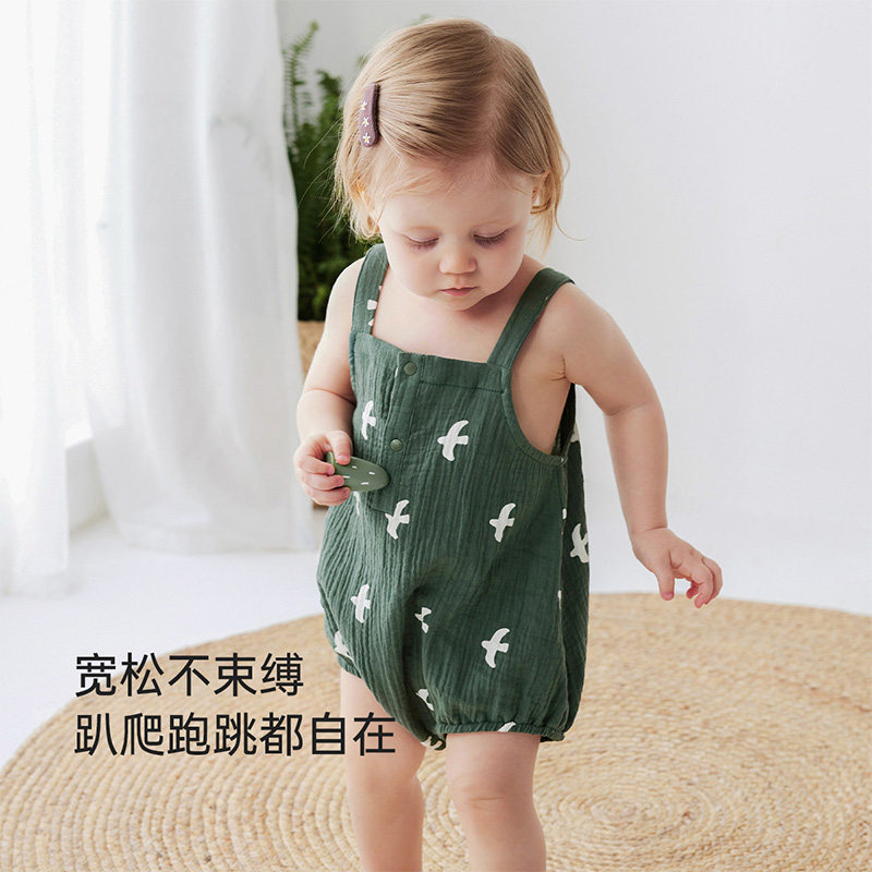 babylove婴儿吊带包屁衣夏季薄款纯棉纱布无袖三角哈衣宝宝爬服