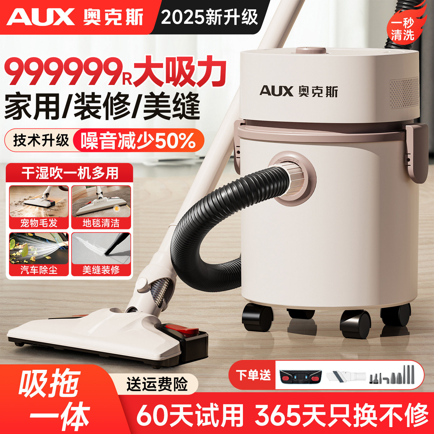 奥克斯吸尘器家用小型手持大功率工业开荒保洁猫毛拖把二合一体机