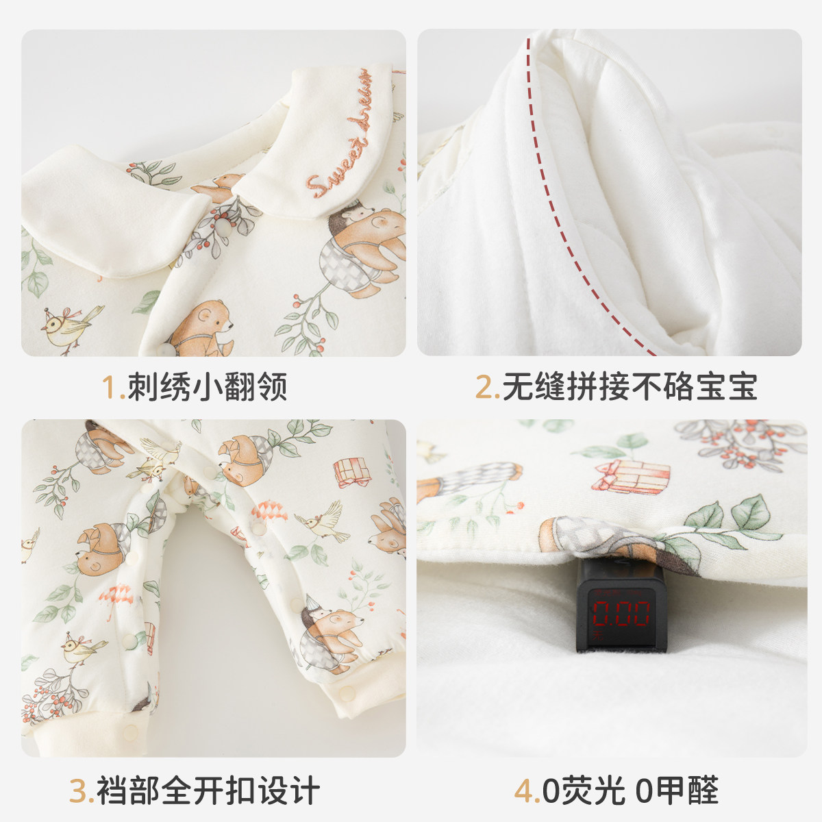 贝肽斯婴儿薄夹棉连体衣冬装外出新生幼儿宝宝衣服保暖空气棉睡衣