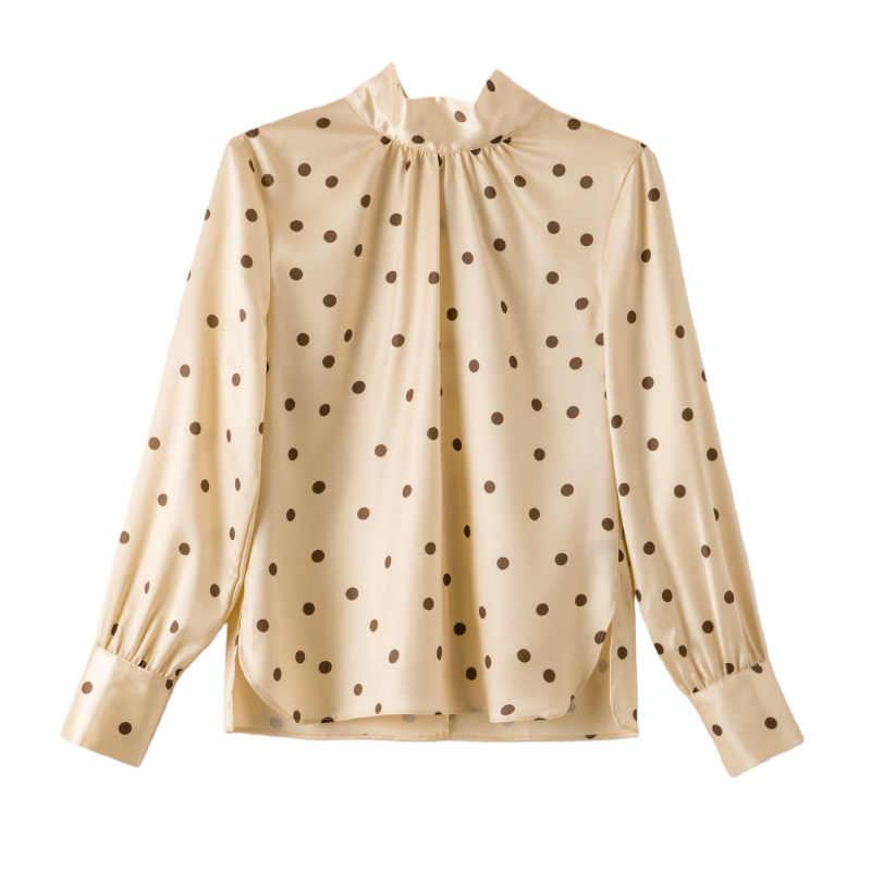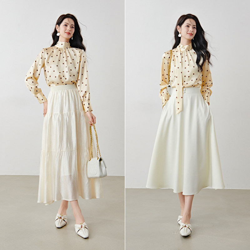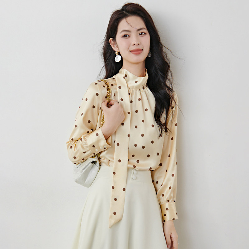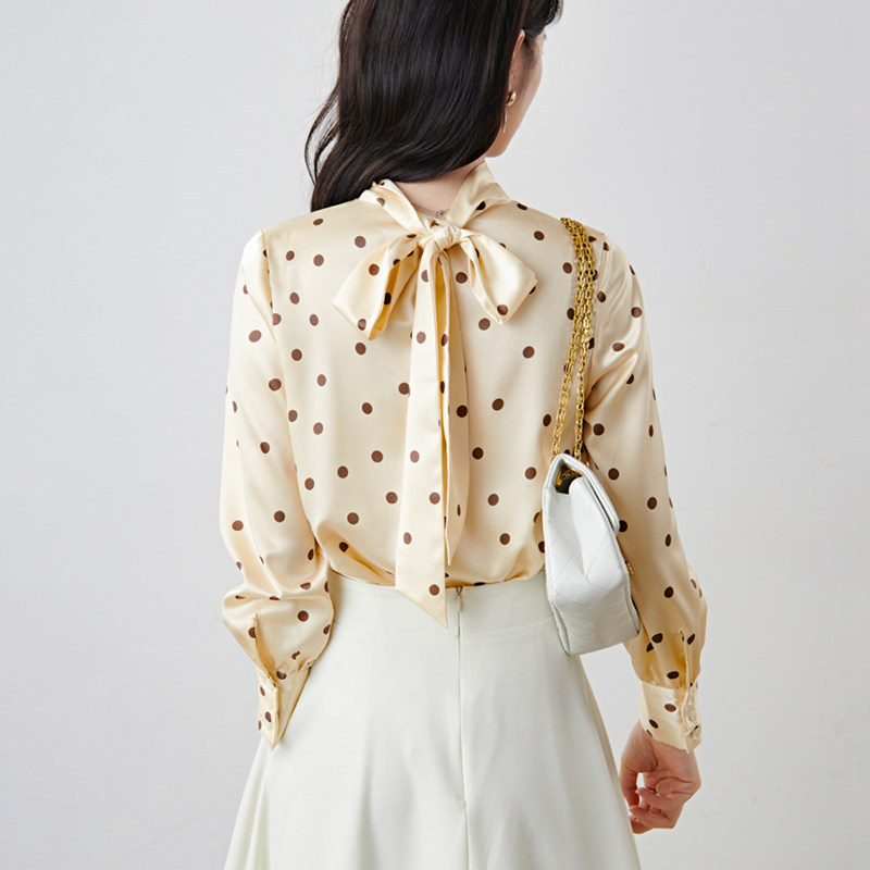 晚白2026年春新款法式优雅缎面波点上衣蝴蝶结系带气质通勤衬衫女