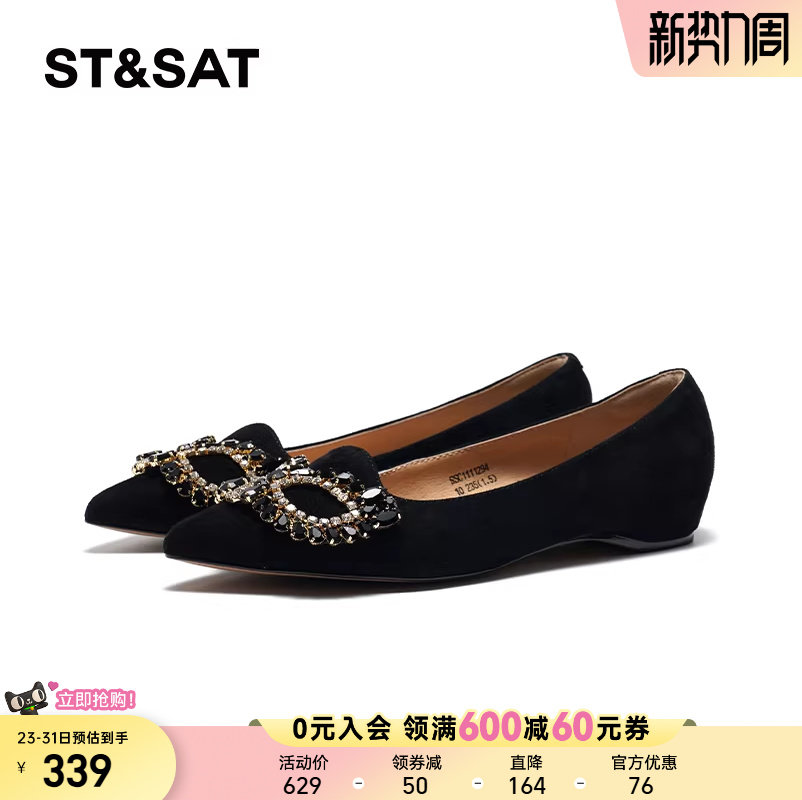 星期六浅口单鞋春季新款时尚尖头假面装饰低跟女鞋SSD1111294