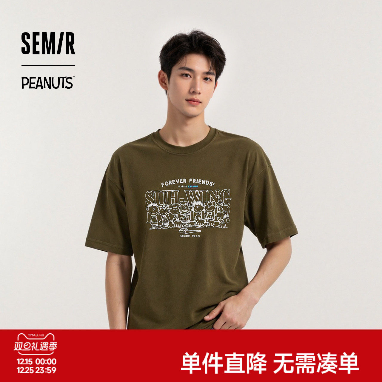 森马史努比系列短袖T恤男做旧复古情侣装纯棉秋季印花上衣中性款