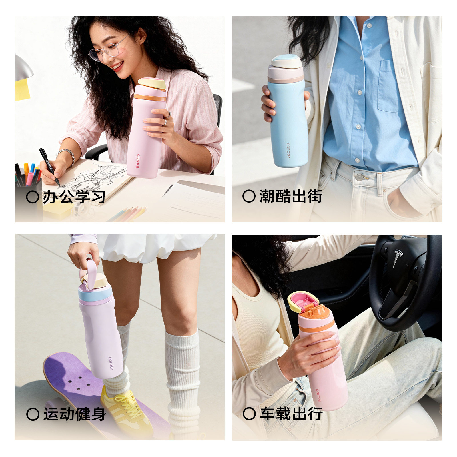卡罗特保温杯Freesip水杯大容量不锈钢保冷手提便携运动吸管杯子