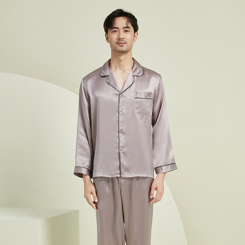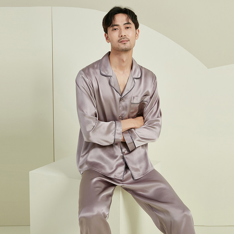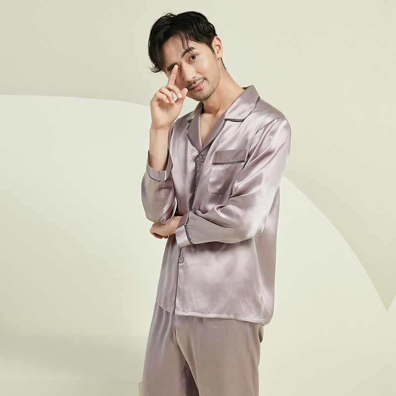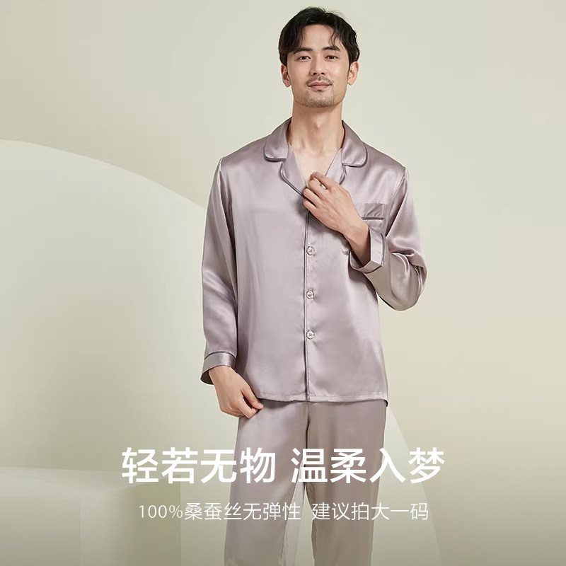 万事利真丝睡衣套装男士女士情侣春秋丝绸100%桑蚕丝家居服-耳语