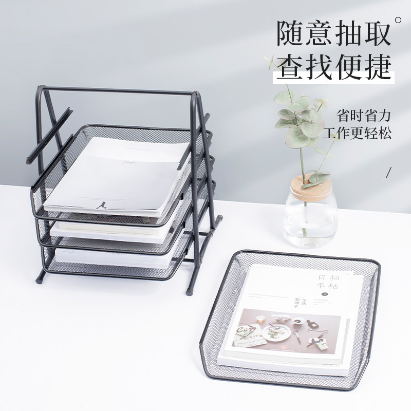 网状文件架二层三层四层文件座资料篮收纳框架整理置物架金属档案