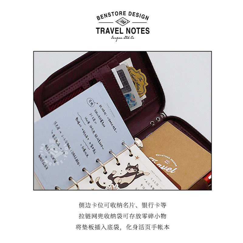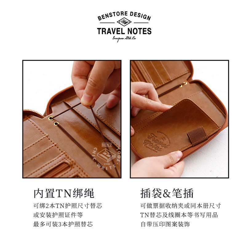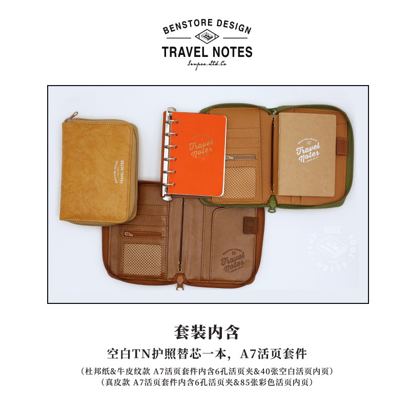 活页TN双用便携旅行拉链收纳本 本字时多 复古6孔M5A7护照TN随身手帐集章笔记本多功能 杜邦纸收纳包护照夹