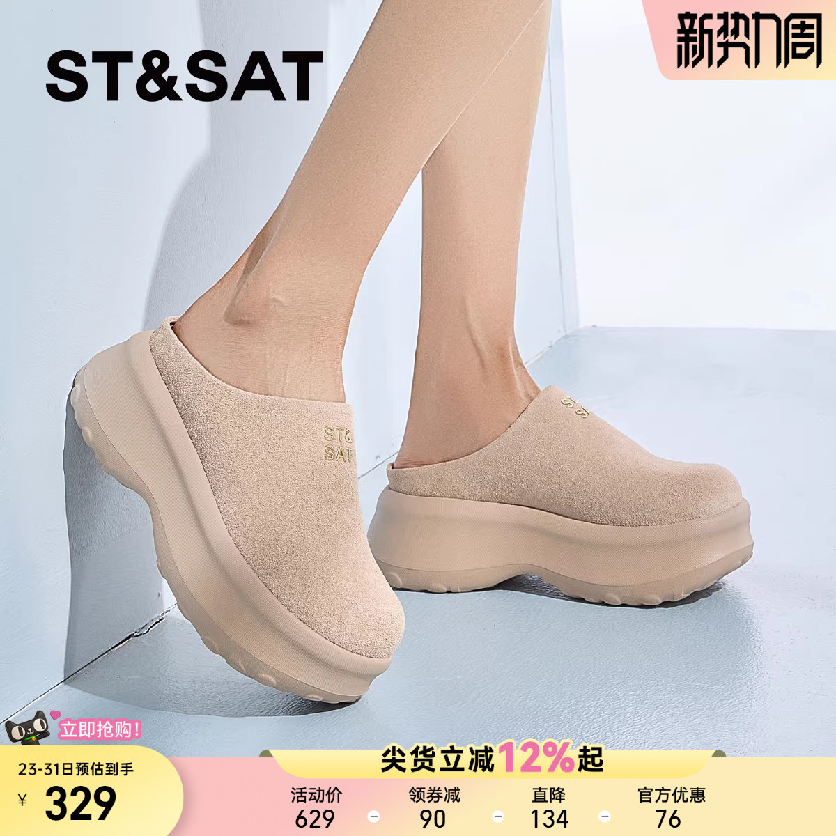 星期六厚底勃肯鞋女夏季新款一脚蹬增高舒适懒人拖鞋外穿包头拖鞋