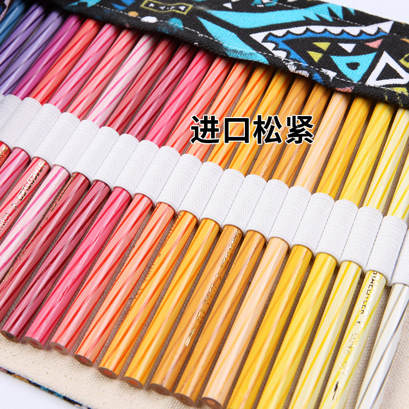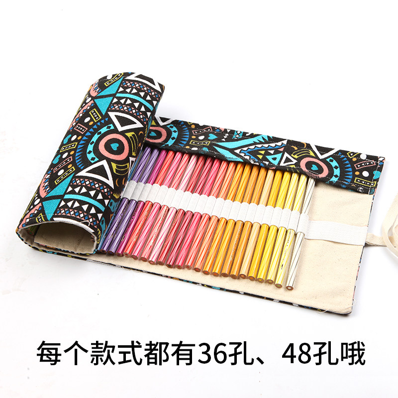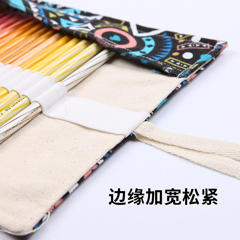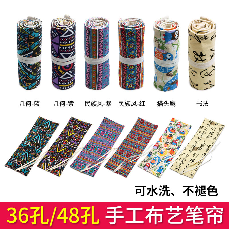民族风手工布艺卷笔袋 36孔48孔帆布笔帘 彩色素描铅笔收纳袋