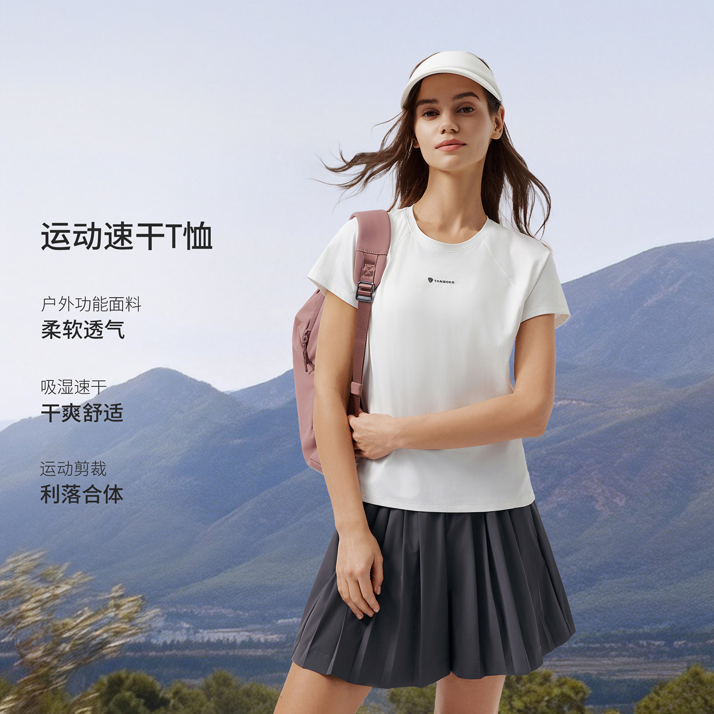 坦博尔运动速干短袖T恤女2026新款圆领透气舒适户外运动风打底衫