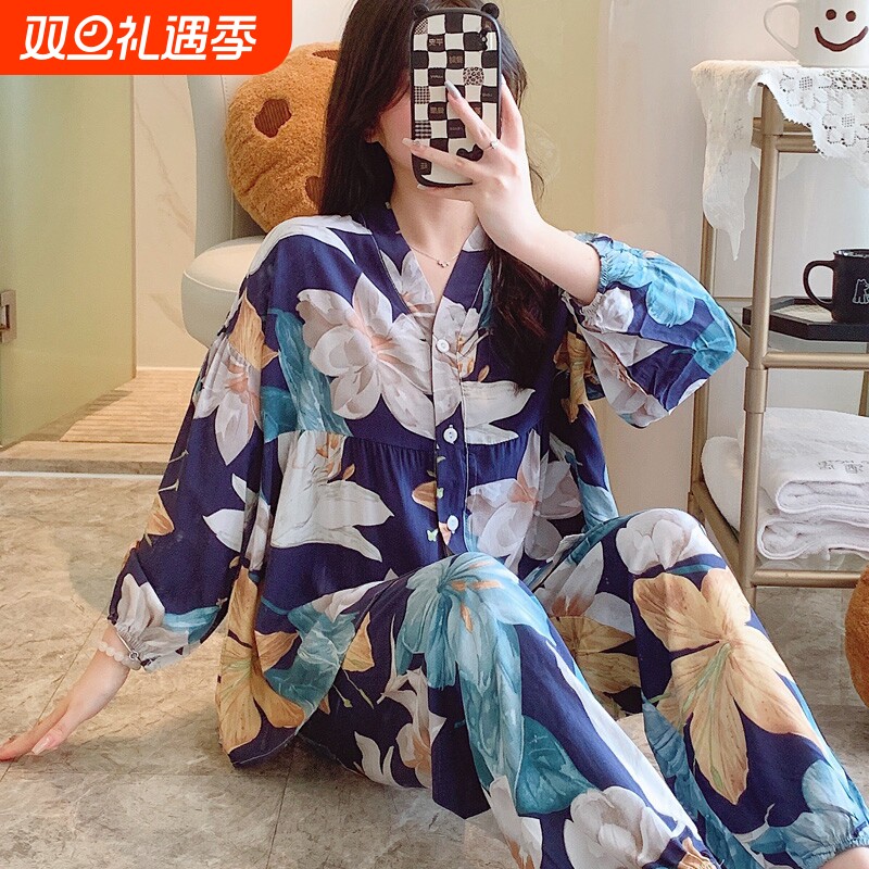 浪莎睡衣女春秋款纯棉长袖2025年新款秋冬大码薄款宽松开衫家居服