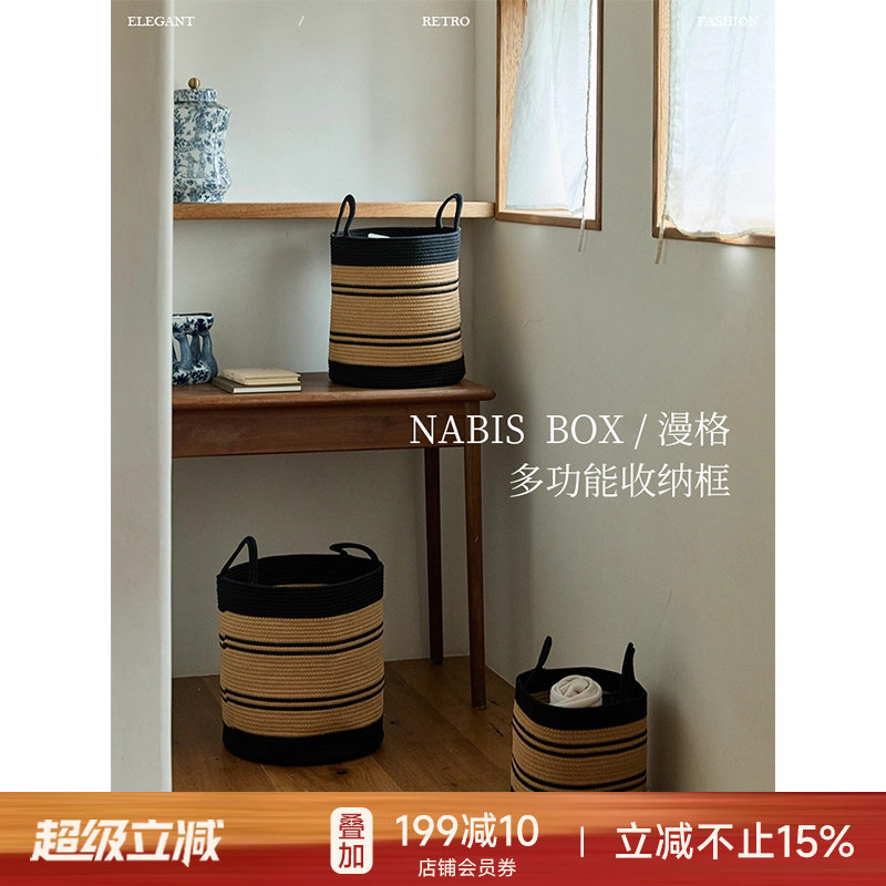 【孤品45折】蜡笔派漫格收纳筐棉绳编织家用脏衣篓家居储物整理箱