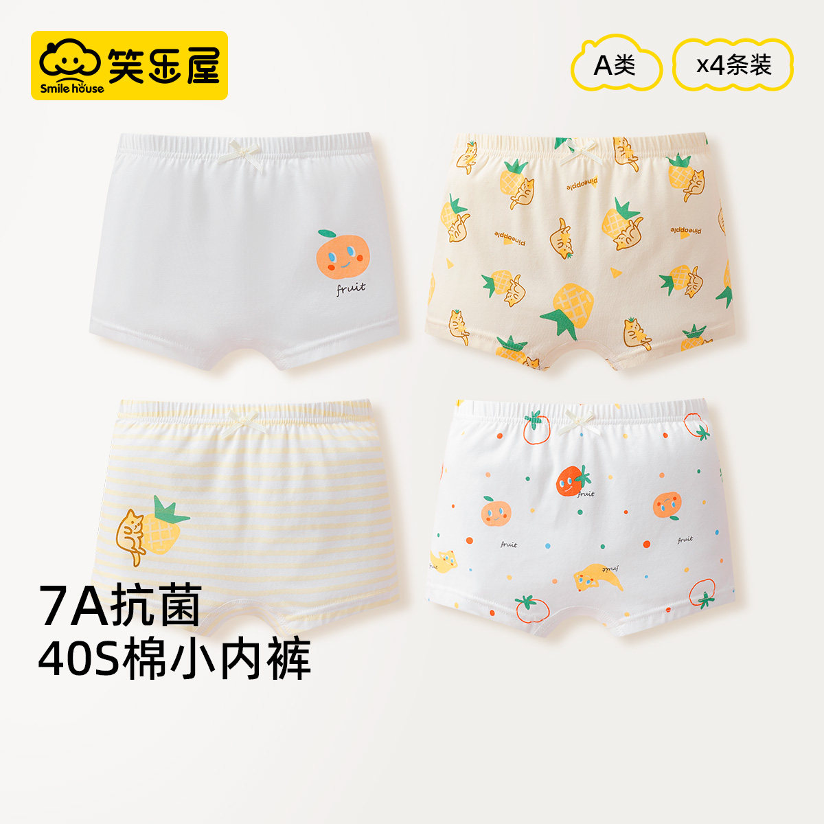 [7A抗菌]英氏儿童女童内裤纯棉女宝宝男童四角打底裤中大童不夹PP