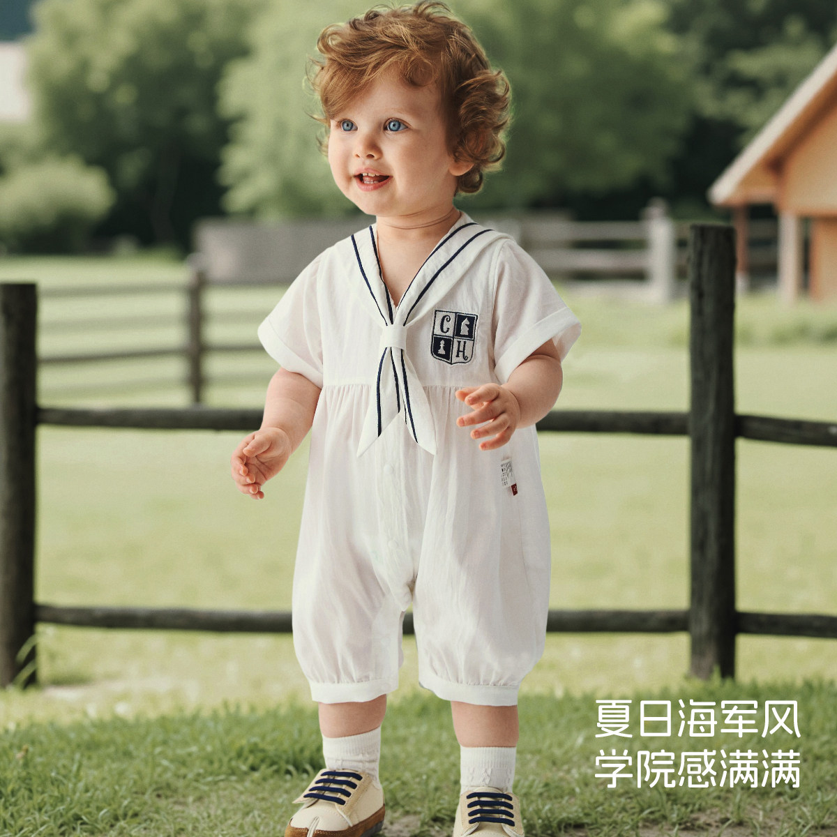 【学院派对】aqpa爱帕宝宝儿童夏季短袖连体衣学院风婴儿连体衣