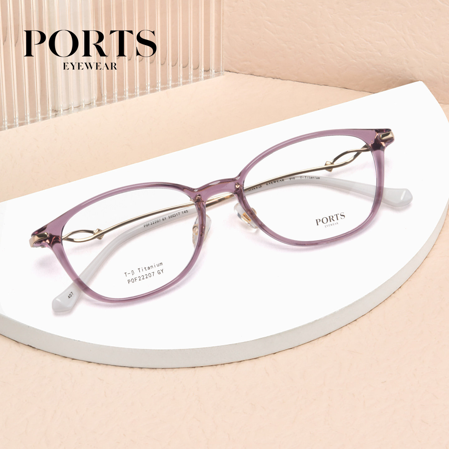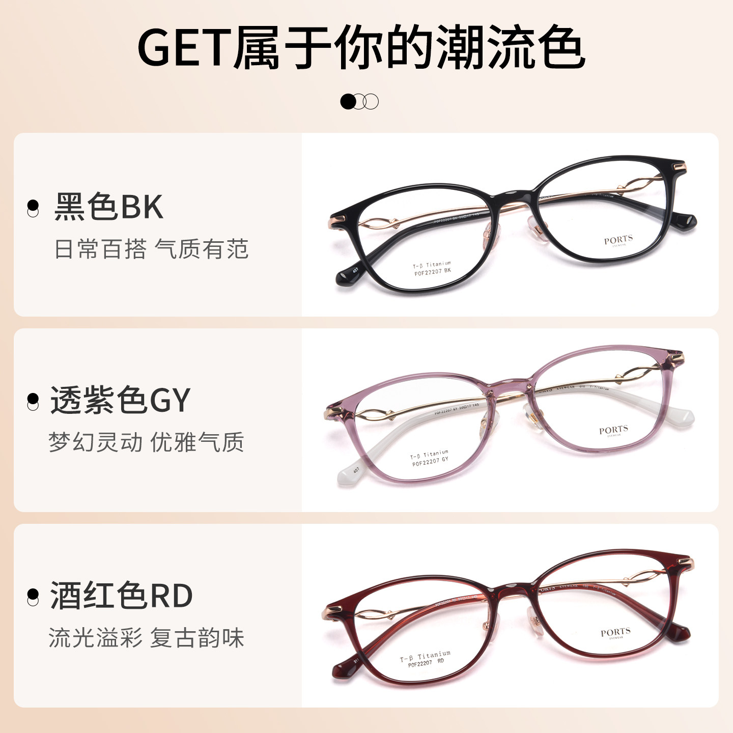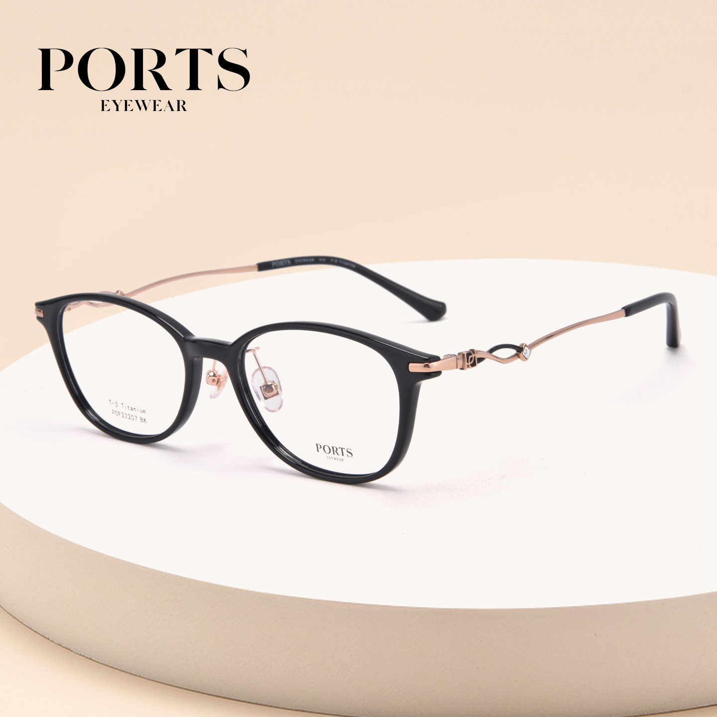 PORTS优雅简约小框近视眼镜超轻女士镜架可配度数POF22207