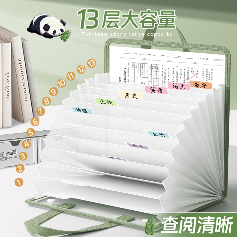 柏逸13格风琴包大容量手提袋透明文件袋学生按扣式科目资料袋