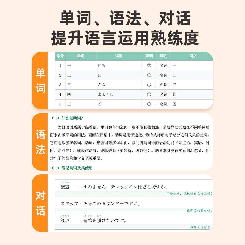 【新品上市】日语零基础入门自学教材标准日本语初级五十音图手写体临摹字帖单词短语语法对话句子初学者初中高中练习册日文听力