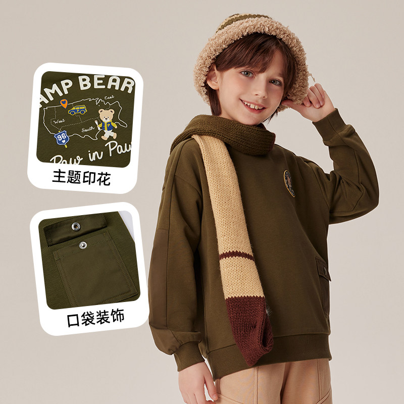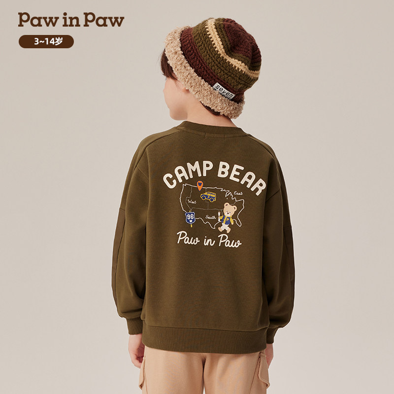 PawinPaw卡通小熊童装秋冬男童圆领印花卫衣宽松舒适