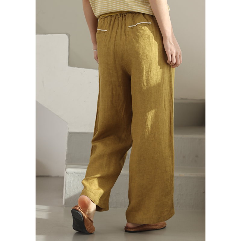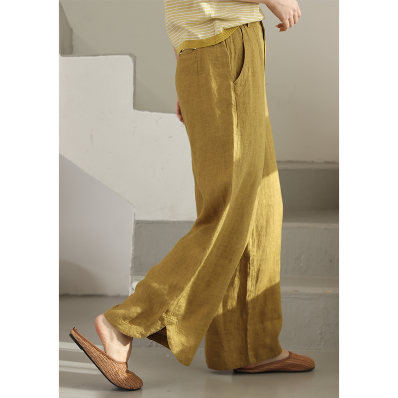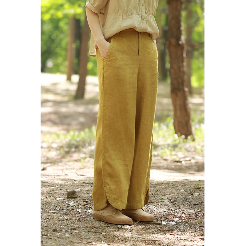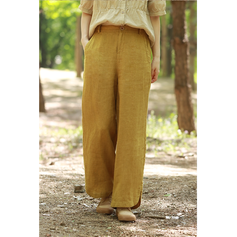 无色无味田园野趣2025新款裤子琥珀黄亚麻休闲显瘦文艺宽松直筒裤