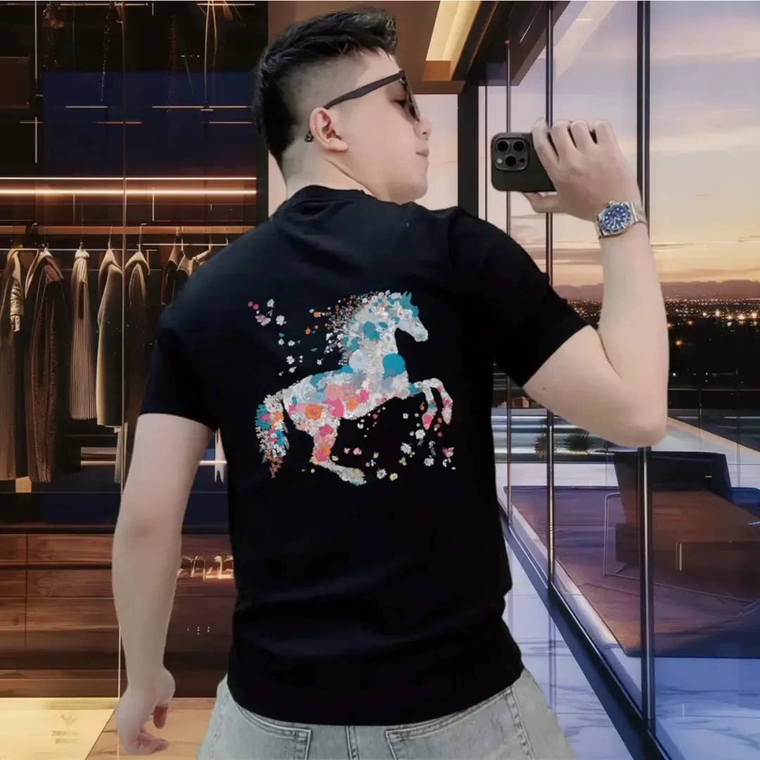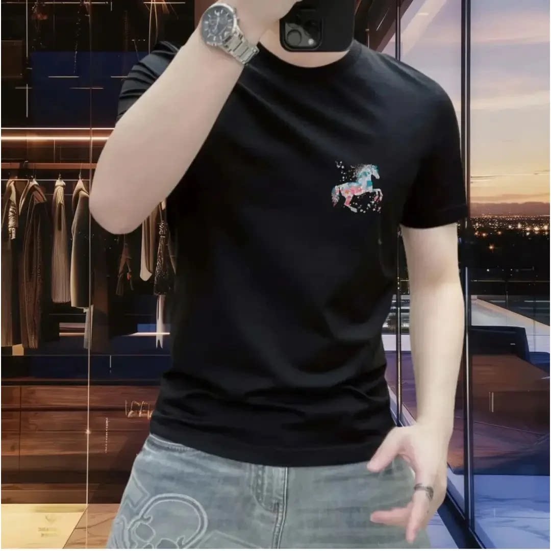 2026夏季男纯棉短袖T恤潮牌印花圆领时尚个性马年半袖上衣打底衫