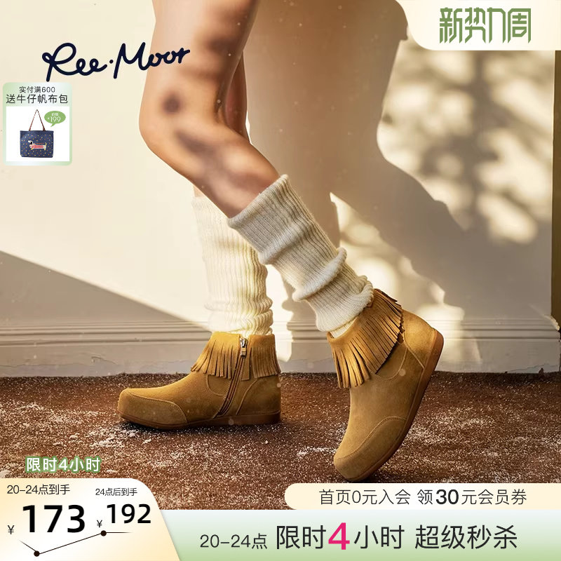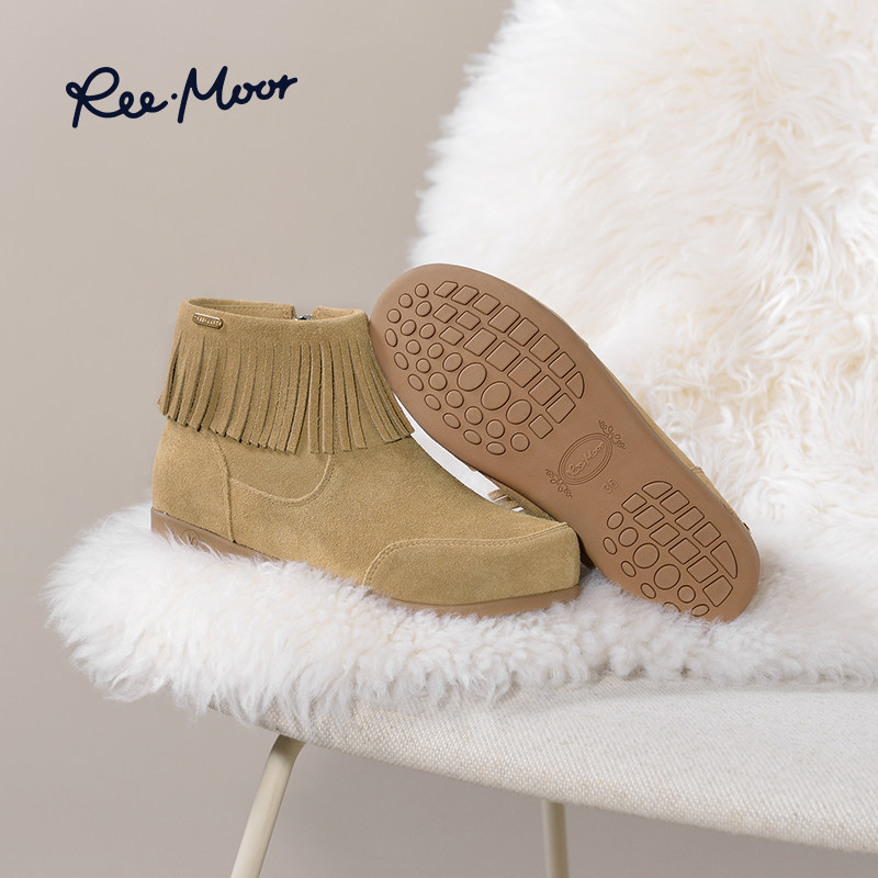 REEMOOR睿慕2025冬季新品休闲时装靴时尚流苏短靴雪地靴单靴女鞋