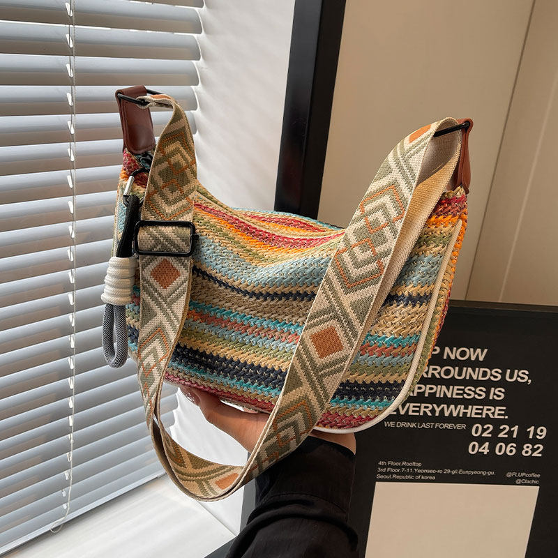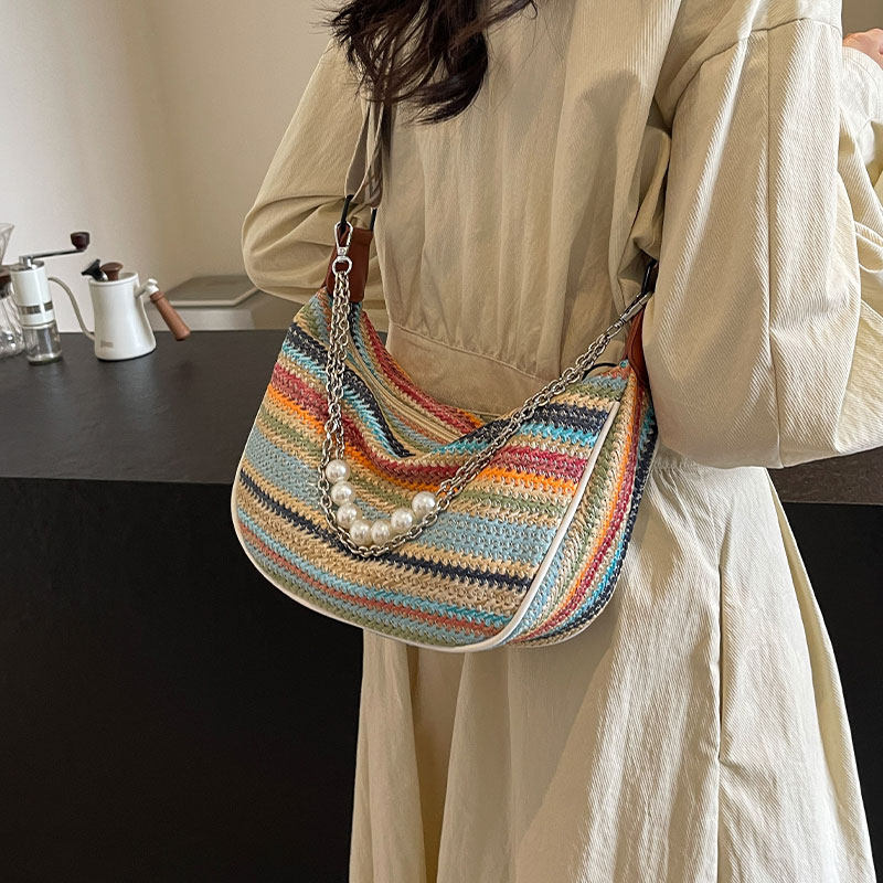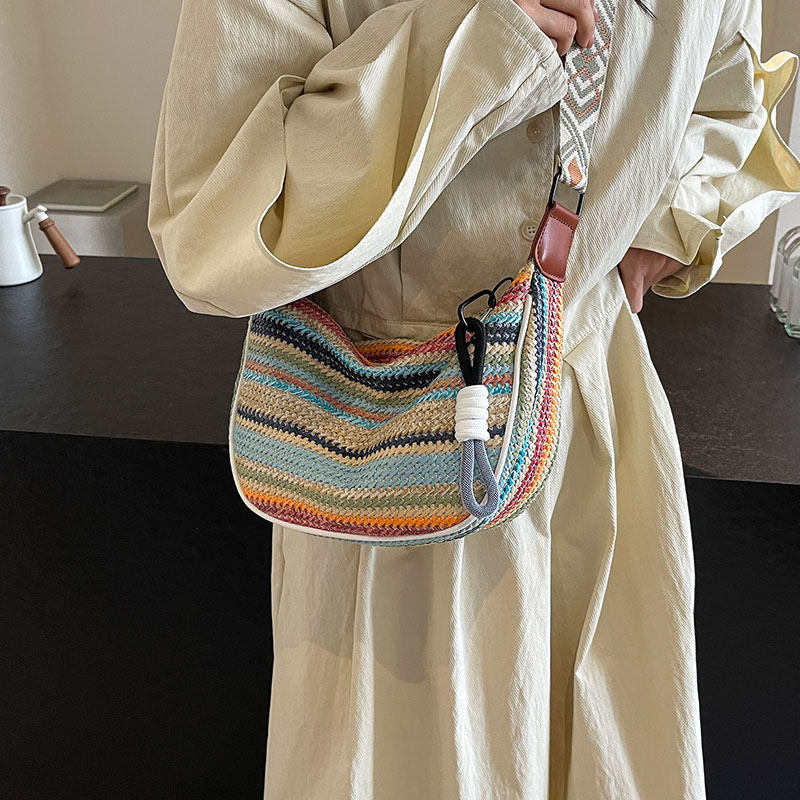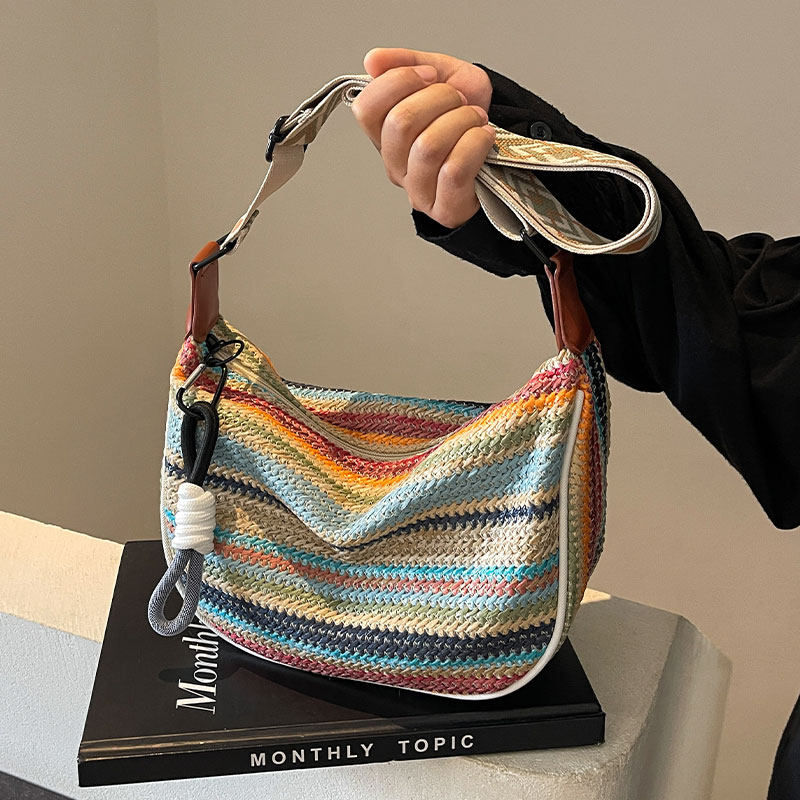 彩虹编织包包女式2025新款时尚小清新斜挎饺子包大容量单肩通勤包